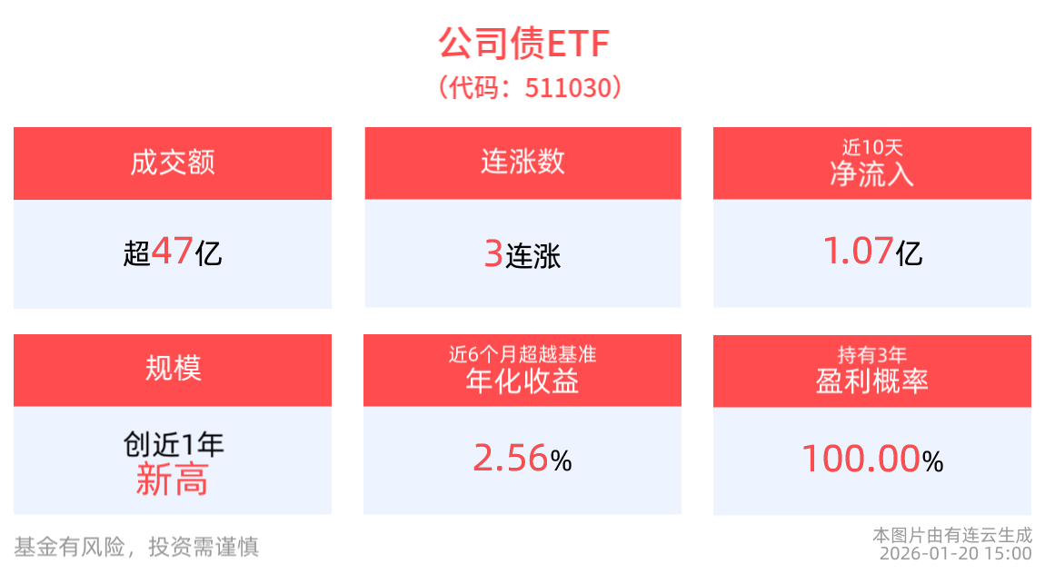 成交额超47亿元,公司债ETF(511030)实现3连涨