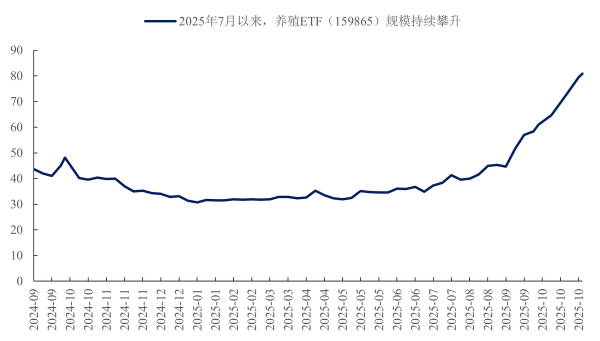 养殖ETF(159865)跟踪的是中证畜牧指数(930707),该指数从沪深市场中选取业务涉及畜禽养殖、 饲料加工等领域的上市公司证券作为指数样本,以反映畜牧业相关上市公司证券的整体表现。中证畜牧 指数覆盖了畜禽养殖、饲料及动保等多个细分领域,具有较强的行业代表性。 (文章来源:每日经济新闻) 根据Wind数据,养殖ETF(159865)盘中净流入7400万份,资金抢筹养殖资产。 长江证券表示,生猪养殖行业已经从过去的快速发展阶段步入到稳态发展阶段,中长期养殖产能调控已 经成为行业新常态,优质养殖企业的利润底部和盈利中枢有望大幅抬升,看好养殖板块中长期的格局优 化,单三季度养殖板块盈利有所分化,优质养殖企业仍然实现了较好的业绩。 ...