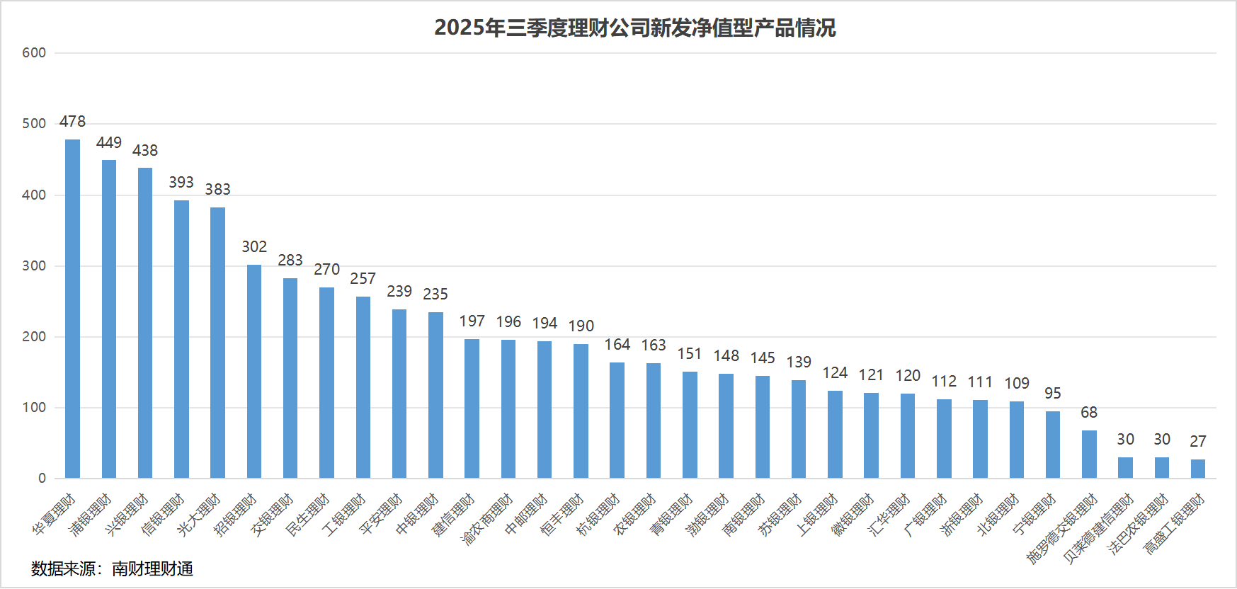 2025年三季度,理财产品发行量稳步上升。南财理财通数据显示,有32家理财公司发行了6361只净值型理财产品,同比2024年三季度涨超40%。同时,理财 产品规模总体平稳。根据《中国银行业理财市场季度报告(2025年三季度)》,截至2025年三季度末,全市场存续规模32.13万亿元,同比增加9.42%。 从产品结构看,在"低利率"与"资产荒"的驱动下,理财公司持续深化多元资产配置转型,发行高含权产品,其中混合类产品发行了106只,权益类产品发行 了11只。此外,为了迎合客户的风险偏好,理财公司逐渐转向发行流动性更高的开放式产品,同时产品的短期化趋势明显。新品定价方面,业绩比较基准延 续下行趋势,利率中枢长期低位成为理财公司的定价共识。发行规模方面,理财公司三季度单品募集规模同比2024年三季度下滑了8.83%。 新品结构:产品发行量同比增幅超40%,非固收类产品占比提升 据南财理财通数据,2025年三季度,32家理财公司发行了6361只净值型理财产品(以产品登记编码为统计标识),同比2024年三季度的4473只上涨了 42.21%,理财产品发行量稳步上升。 从发行机构看,股份行理财公司华夏理财、浦银理财和兴银 ...