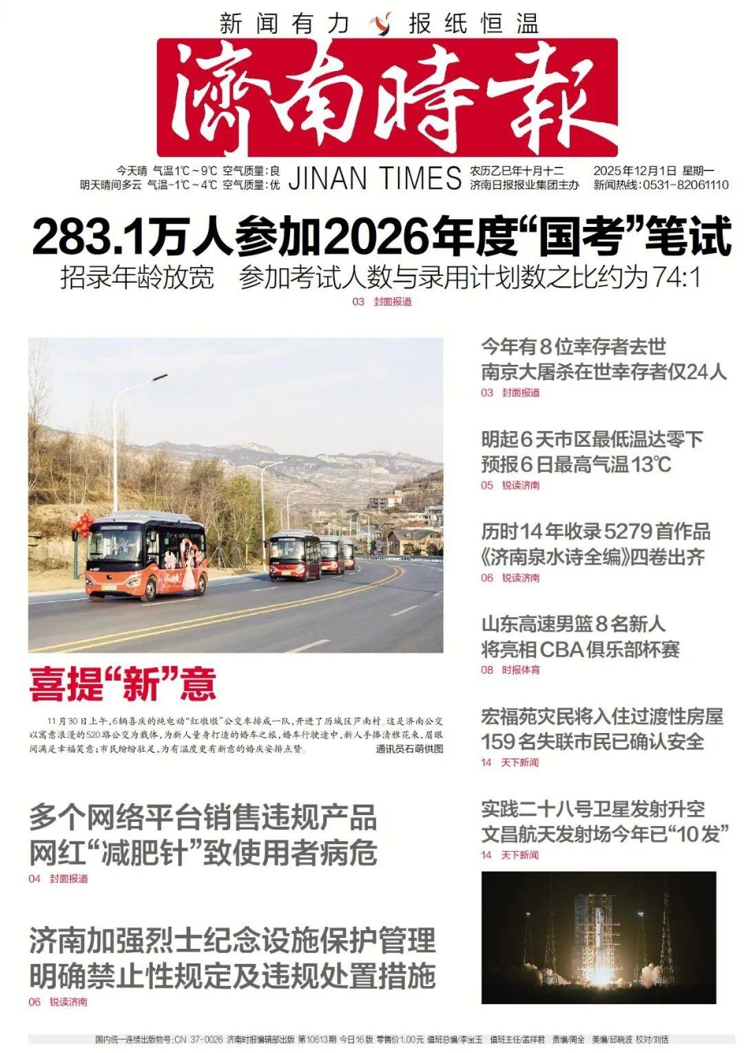 济南孙村片区低密度住宅用地挂牌 - 2025年12月1日,济南孙村片区挂牌一宗城镇住宅用地,将于12月29日网上竞拍 [1] - 该地块容积率最大仅1.05,是2025年济南土地市场容积率最低的住宅用地之一 [1][39] - 地块位于孙村片区围子山以东、世纪大道以北,土地出让面积80,656平方米,起始价41,563万元,楼面起拍价4,907元/平方米 [1][39] - 地块西邻围子山郊野公园,南侧规划商业金融地块,交通便利,世纪大道云巴1号线开通在即 [39] - 超低容积率可设置纯墅、联排等低密度产品,该地块是武将山片区城市更新项目一期首宗出让的低密度住宅地块 [39] - 根据更新方案,片区内将新建14宗住宅及商业用地,住宅用地容积率在1.1到1.5之间 [39] - 竞得人需分摊社区建设资金867万元,并无偿代建周边绿化及截洪沟工程,费用约2,300万元 [40] - 与2023年成交的相邻地块(容积率1.2,楼面价9,203元/平方米)相比,该地块起拍价具有一定性价比 [40] 食品安全与假冒奶粉案 - 河南警方破获一起制售假奶粉案,涉案金额高达650万元,三名主犯被判有期徒刑十五年 [7] - 制假团伙在出租屋内用植脂末、麦芽糊精等劣质原料勾兑,添加工业香精伪造奶香,成本仅2-4元/罐 [7][8] - 假奶粉通过电商平台以30-88元/罐高价销售,利润率超过10倍 [8] - 假产品蛋白质和脂肪含量几乎为零,长期食用可能导致营养不良,对婴幼儿和老年人危害极大 [8] - 假货借助电商平台、视频号等隐蔽渠道覆盖全国,形成低成本、高利润、广覆盖的犯罪模式 [8] - 监管存在被动性,本案最初因仓库刺鼻奶香气味而被偶然发现,暴露出日常监管的形同虚设 [8] - 电商平台对商家资质审核流于形式,物流企业未严格查验货物,加剧了假货扩散 [8] - 犯罪嫌疑人通过正规渠道办理经营手续并多次换地经营,其异常信息未引起监管部门警觉 [8] 2026年度国家公务员考试 - 2026年度“国考”公共科目笔试于11月30日举行,共有283.1万人参加考试,参考率约为87.4% [3][14] - 参加考试人数与录用计划数之比约为74:1 [3][14] - 2026年“国考”共计划招录3.81万人,较上年度减少0.16万人 [15] - 共有371.8万人通过资格审查,通过资格审查人数与录用计划数之比为98:1 [15] - 国家移民管理局瑞丽遣返中心某职位招考1人,审查通过人数达6,470人,报录比达6,470:1 [15] - 今年招录年龄放宽,报考者年龄一般为18-38周岁,2026年应届硕士、博士研究生放宽至43周岁以下 [16] - 招录岗位继续向应届生和基层一线倾斜,约2.6万个计划主要招录应届高校毕业生,占总招考人数的68%以上 [16] - 同时,有2.8万余个计划补充到县(区)级及以下直属机构 [17] 网红“减肥针”安全风险 - 江苏苏州陈女士注射从朋友圈购买的“四点暴瘦王”减肥针后,出现严重不良反应,一度病危 [5][23] - 陈女士注射后4天瘦了10斤,但随后呕吐胆汁、消化道出血,心电图时吐血,胃黏膜受损 [23] - 浙江沈女士在美容院注射“减肥针”后,出现肝肾功能衰竭,住院治疗4个多月,需定期复查 [24] - 此类产品在抖音、小红书、淘宝等多个平台销售,名称五花八门,价格从数十元到数百元不等 [25] - 产品通常由一瓶粉剂和一瓶溶媒液组成,但多数未明确标注“械字号”或“药字号”备案信息 [25] - 记者送检产品发现,其中均含有名为司美格鲁肽的药物成分 [26] - 司美格鲁肽是处方药,必须经医生诊断评估后凭处方开具,严禁无证销售 [27] - 商家销售时十分谨慎,回避提及成分,并提示避免使用“注射器”等敏感词 [27][28] - 2024年上海一起相关案件中,被告人因销售此类减肥产品造成人身伤害,被以妨害药品管理罪判刑 [29] - 生产成本仅约4元的针剂,经过包装营销后价格飙升几十甚至上百倍 [30] 重大工程质量管理事件 - 媒体反映福建永安抽水蓄能电站施工存在质量问题,项目总投资75亿元 [11] - 中国电建已成立调查组,将全面调查核实,依法依规处理 [11] - 媒体报道称,涉嫌偷工减料工程的设计方、施工方与监理方同属中国电建 [12] - 有视频显示,该标段监理单位多名监理人员曾接受施工方宴请,在KTV娱乐并有偿陪侍 [12] - 若设计、施工、监理确属同一企业,则架空了相互监督的机制,让质量管控沦为内部“自审” [12] 济南城市建设与文化动态 - 济南加强烈士纪念设施保护管理,四部门联合发布通告,明确保护范围内禁止性规定及违规处置措施 [5][41] - 地铁4号线大杨站新建三个出入口亮相,该站作为4号线与1号线换乘枢纽,出入口总数达到8个 [42] - 历时14年编纂的《济南泉水诗全编》四卷本出版发行,共收录5279首泉水诗,出自1596位诗人之手 [5][44] - 其中清诗4,048首,明诗1,069首,“天下第一泉”趵突泉的诗作近1500首 [44][45] - 济南黄河凤凰大桥荣获“2020-2025年度十大最美桥梁”荣誉,主跨2×428米,为世界跨度最大的三塔组合梁自锚式悬索桥 [46] - 大桥采用公轨同层合建设计,公路双向8车道,中间设双线轨道交通 [47] - 全国首个宋词文化沉浸式演艺乐园“如梦令宋词主题演艺乐园”在济南起步区开园,并举行汉服巡游活动 [37] 体育赛事与运动员动态 - 山东高速男篮将出战2025CBA俱乐部杯赛长沙赛区,同组有浙江广厦、北京北汽等劲旅,小组出线难度较大 [5][48] - 球队参赛名单中有8位新人,包括新援陈林坚及两名新外援,球队旨在通过杯赛磨合阵容,备战CBA新赛季 [48][50] - U16国足在U17亚洲杯预选赛中4比0战胜孟加拉国队,以5战全胜、进42球失0球的战绩晋级2026年U17亚洲杯正赛 [55] - 中国女足在