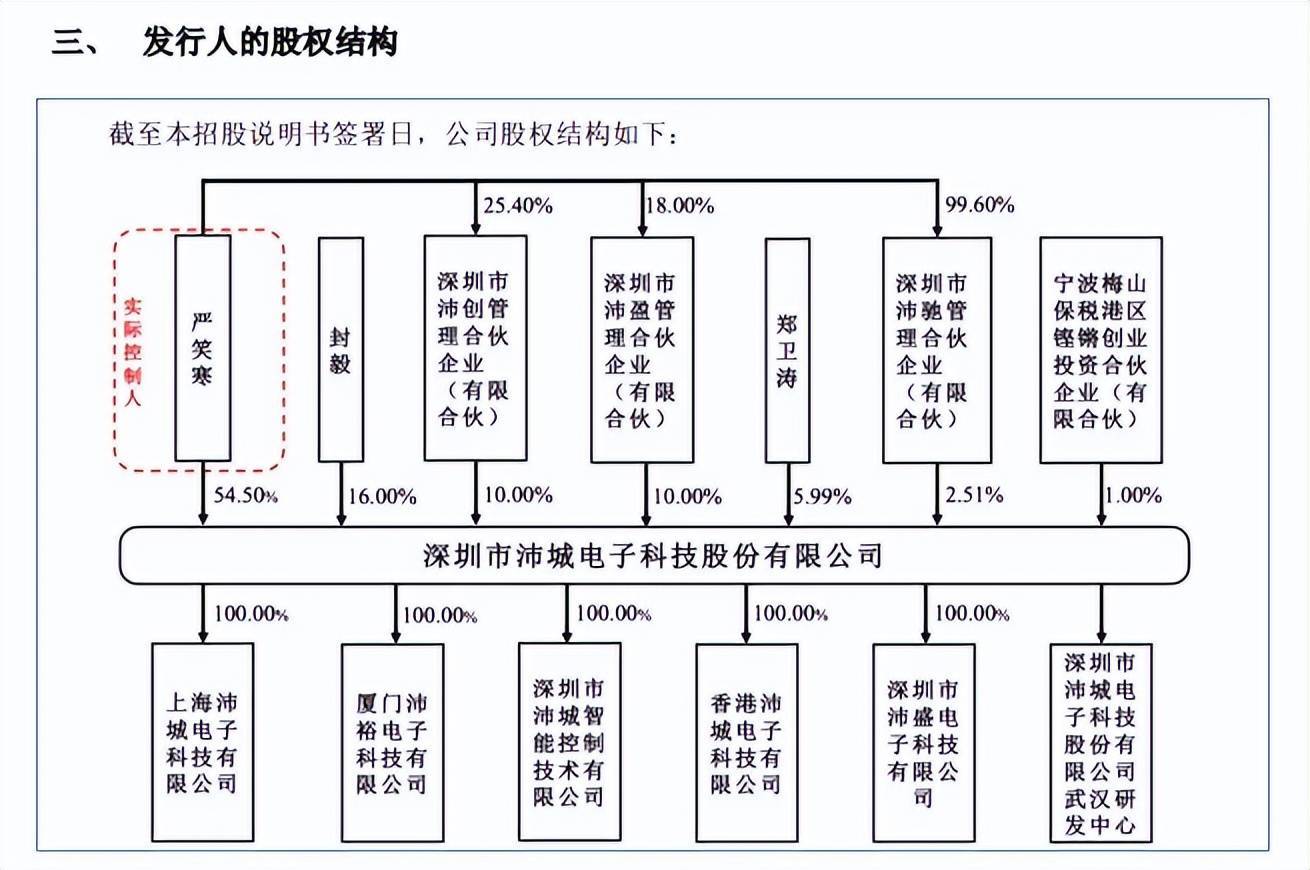 公司上市进程与基本信息 - 深圳市沛城电子科技股份有限公司于12月30日在北京证券交易所成功过会,保荐机构为国泰海通证券 [1] - 公司专业从事第三方电池电源控制系统(如BMS、PCS)的自主研发、生产及销售,并提供以集成电路、分立器件为核心的元器件应用方案 [1] - 公司客户包括DIODES、意法半导体、华润微、必易微、联智等多家知名元器件原厂 [1] - 公司前身沛城有限成立于2004年2月,于2023年9月完成股份制改革,2024年9月挂牌新三板,并于今年3月调入创新层,主办券商均为国泰海通证券 [1] 公司股权结构与实际控制人 - 公司控股股东及实际控制人为严笑寒,其直接持股比例为54.5%,并通过沛创合伙、沛盈合伙、沛驰合伙间接控制22.51%的股份,合计控制公司77.01%的股份 [1] - 严笑寒出生于1970年,拥有硕士学历,2004年至2023年先后担任沛城有限总经理、监事、执行董事,2023年至今担任公司董事长,同时兼任沛城智控及香港沛城的董事 [3] 员工股权激励计划详情 - 2020年12月,实际控制人严笑寒以自有资金向8名核心管理层和业务骨干员工赠予合计750万元,用于认购公司股权实施股权激励,赠予金额与员工认购金额一致 [3] - 获得股权激励的8名员工包括:研发总监龚伟刚、高级销售总监谭强、子公司负责人郭艾翠与杭宇鹏、财务总监兼董事会秘书姜泽芬、运营总监唐秀丽、董事兼副总经理宁荣彬,以及已离职的原销售总监汤子成 [3] - 员工通过沛创合伙和沛盈合伙两个平台持有股权,多数员工在公司服务年限在十五年以上,部分超过二十年 [4][5] - 此员工股权出资款完全来源于实际控制人赠予的情况较为罕见,引起了北交所的关注,并在问询中要求公司说明该安排的客观依据、是否存在股权代持、是否经双方确认及是否存在潜在纠纷 [5] 实际控制人对外股权转让与投资 - 2023年6月,严笑寒向宁波梅山保税港区铿锵创业投资合伙企业转让了沛城科技50万元的出资额,每股价格为20元,交易对价为1000万元,对应市盈率为10.82倍 [6] - 受让方宁波铿锵成立于2023年5月,注册资本3000万元,执行事务合伙人为宁波鼎锋明道投资管理合伙企业,其在成立次月即受让了公司股份 [6] - 严笑寒个人曾投资于宁波鼎锋明道汇盈投资合伙企业,并在2022年1月和6月分别获得18.07万元和5.23万元的投资收益,合计23.3万元;其还投资了宁波鼎锋明道汇正投资合伙企业 [7] - 明道汇盈、汇正投资的基金管理人与宁波铿锵相同,均为宁波鼎锋 [8] - 在宁波铿锵受让股份约4个月后,即2023年10月,沛城科技启动了上市辅导备案 [8] - 北交所在问询中要求公司结合历史股权变动价格,并说明宁波铿锵与严笑寒及其关联方是否存在关联关系,以论证此次股权转让定价的公允性及是否存在股权代持 [8]