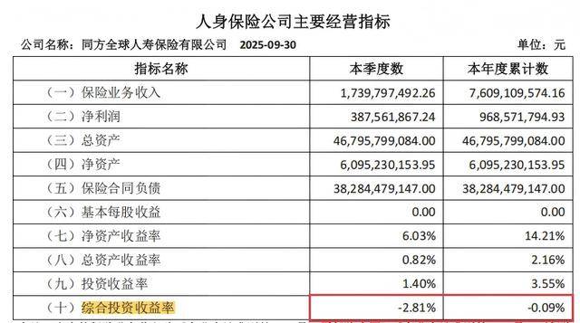 同方全球人寿三季度综合投资收益率为负,偿付能力充足率下滑,年内频频被起诉