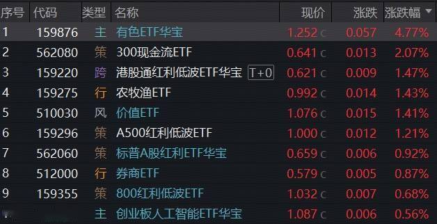 ETF复盘资讯|赛道分化,有色完胜,近1年豪涨130%,159876又新高!军工急踩刹车,创业板人工智能尾盘翻红!