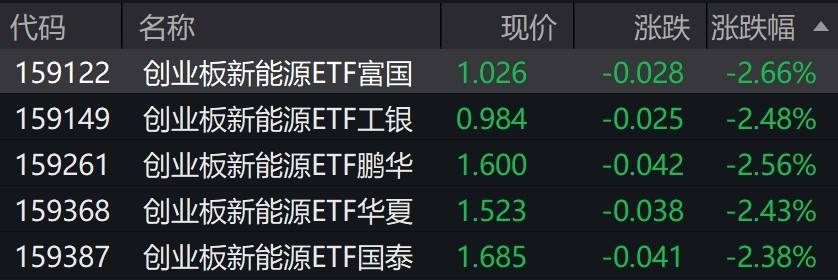 新能源概念股走低,创业板新能源相关ETF跌超2%