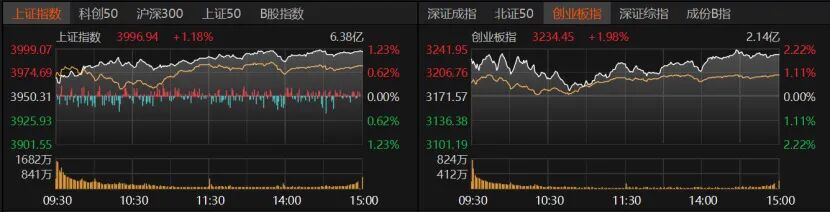 市场整体表现 - A股市场量价齐升,沪指收涨1.18%报3996.94点,逼近4000点,创业板指收涨1.98%报3234.45点 [1][5] - 市场总成交额放量至2.36万亿元,沪深京两融余额增至2.46万亿元 [5] - 个股表现分化,3361只个股收涨,1862只个股收跌 [5] 行业板块表现 - 科技股表现强劲,通信行业指数上涨3.22%,电子行业指数上涨2.96% [6][7] - 有色金属和国防军工行业指数分别上涨2.39%和1.44% [7] - 31个申万一级行业中多数板块收涨,市场热点轮番活跃 [6] 科技细分领域 - 通信设备板块上涨5.08%,光模块公司新易盛股价上涨8.31%,中际旭创股价上涨3.02% [5][8][9] - CPO概念指数上涨4.02%,新易盛、华工科技、天孚通信等个股涨幅显著 [10] - 存储芯片概念指数上涨4.92%,兆易创新、德明利等个股涨停 [8][9] 核心驱动因素 - 中美经贸谈判进展良好,缓解了科技领域脱钩的担忧 [1][13] - 十五五规划对科技创新的强调,政策预期显著升温 [12][13][17] - 9月份规模以上工业企业利润同比增长21.6%,显示微观企业盈利能力修复 [13] 资金流向与市场情绪 - 成交额超过100亿元的个股共计15只,主要集中在科技股 [5] - 新易盛、中际旭创、胜宏科技日成交额均超过200亿元 [5] - 上证指数逼近4000点,打破投资者长期形成的3000点中枢思维 [14] 机构关注方向 - 建议关注AI算力、半导体设备、卫星通信等受益于政策红利与全球技术迭代的领域 [18] - 科技制造涵盖半导体、算力、军工、新能源等有望成为阶段性主线 [17] - 出口导向型行业如电子、机械等可能受益于中美关税协议 [18]