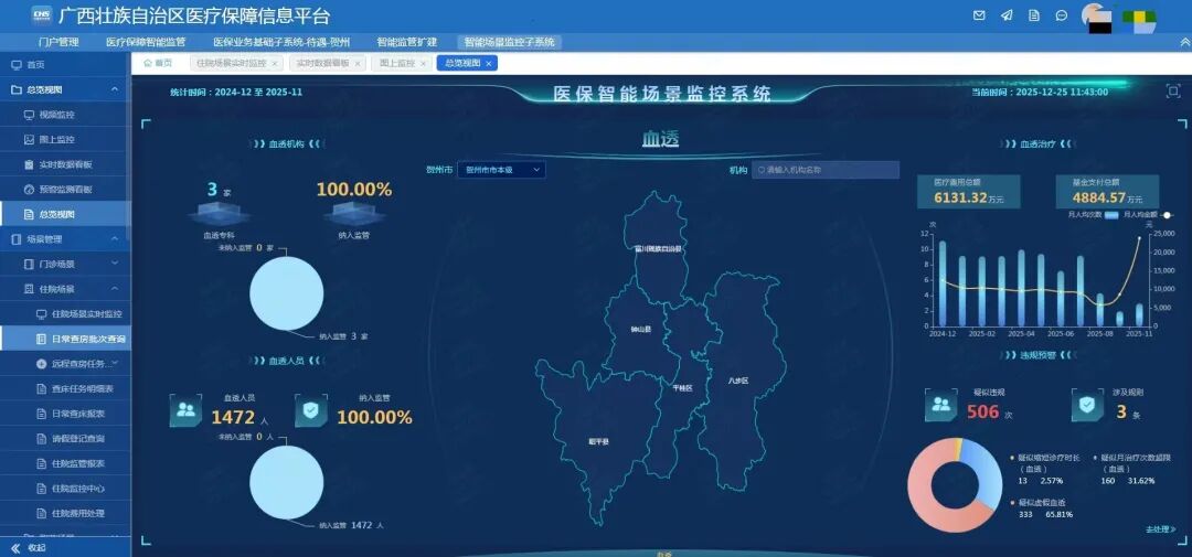 转自:广西贺州政府网 近年来,贺州市积极响应国家医保基金监管数字化转型号召,以创新为引领、科技为支撑,围绕医保基金监管数字化转型目标,探索创新监管模式,大力 推进医保智能监管与智能场景监控"双智融合"应用。这一举措为医保基金监管注入智慧动力,推动医药机构优化服务流程、规范诊疗行为,初步实现医保 基金监管从"事后追责"向"事前防范"、从"粗放管理"向"精准治理"的跨越,更好守护医保基金安全防线。如今,贺州市智能监控系统接入率、场景覆盖广 度居全区前列,成功入选国家智能监管改革试点地区,成为医保基金监管领域的"排头兵"。 图为医保智能场景监控系统 目前,全市已有174家定点医药机构完成智能场景监控建设并常态化运行。系统启用以来,挂床住院、冒名就医等现象得到有效遏制,累计发现住院期间 请假不在床0.34万人次,拦截冒名就医5起,阻断不合理医疗费用约28.84万元。康复理疗领域也日趋规范,36家医疗机构主动退费重结384笔,涉及金额 1.94万元。 试点先行,树立行业新标杆 智能拦截,风险防范在源头 "系统一提醒,我们就知道哪里可能存在问题,及时调整,既规范了诊疗,也保护了基金安全。"在贺州市一家定点医院,医生对医保 ...