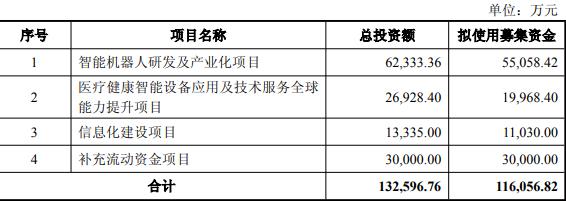 融资计划 - 公司计划通过向特定对象发行股票募集资金总额不超过人民币11.61亿元 [1] 募集资金用途 - 募集资金净额将用于智能机器人研发及产业化项目 [1] - 募集资金净额将用于医疗健康智能设备应用及技术服务全球能力提升项目 [1] - 募集资金净额将用于信息化建设项目 [1] - 募集资金净额将用于补充流动资金项目 [1]