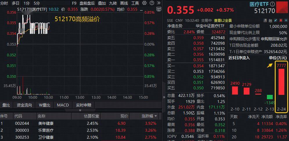 ETF盘中资讯|大权重发力,医疗快速翻红,512170溢价涨逾1.4%!资金连续12日加码,累计增仓超26亿元