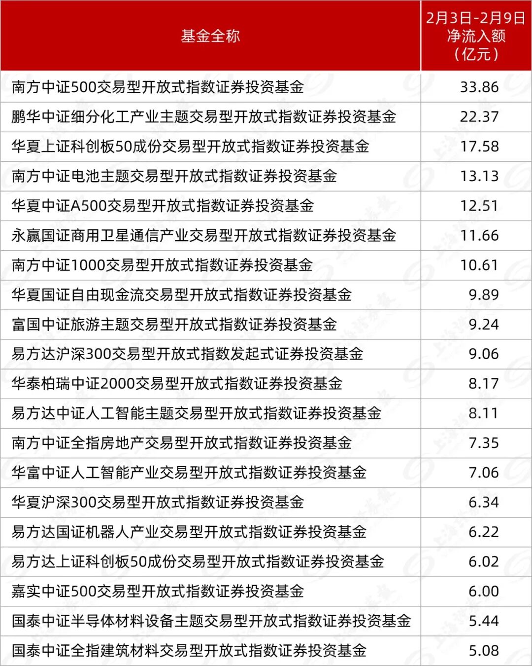 股票型ETF资金流向逆转 - 自2月3日开始,股票型ETF资金持续净流出的情况得以逆转,2月3日至9日期间整体净流入83.89亿元 [1][2] - 2月3日单日净流入69.65亿元,2月5日至6日两个交易日合计净流入逾120亿元 [2] 中小市值风格ETF获资金青睐 - 以中证500ETF、中证1000ETF为代表的中小市值风格ETF吸引大量资金买入 [1][2] - 2月9日,南方中证500ETF净流入23.66亿元,南方中证1000ETF净流入16.26亿元,华夏中证1000ETF净流入5.15亿元 [2] - 2月3日至9日期间,南方中证500ETF净流入33.86亿元,南方中证1000ETF净流入10.61亿元 [2][3] - 同期,嘉实中证500ETF净流入6.00亿元,华泰柏瑞中证2000ETF净流入8.17亿元 [2][3] 行业主题ETF资金流入情况 - 2月3日至9日期间,鹏华化工ETF净流入22.37亿元,华夏科创50ETF净流入17.58亿元 [2][3] - 南方电池ETF净流入13.13亿元,华夏中证A500ETF净流入12.51亿元,永赢卫星ETF净流入11.66亿元 [2][3] - 其他净流入较多的ETF包括:富国中证旅游主题ETF(9.24亿元)、易方达人工智能主题ETF(8.11亿元)、南方房地产ETF(7.35亿元)、易方达机器人产业ETF(6.22亿元)等 [3] 资源主题ETF遭遇显著净流出 - 前期涨幅较多的资源主题ETF成为净流出主要方向 [3] - 华夏有色金属ETF净流出45.45亿元,永赢黄金股ETF净流出27.83亿元,南方有色金属ETF净流出26.63亿元 [3] 新发ETF为市场提供增量资金 - 新发ETF密集上市,2月9日至10日有4只ETF上市交易,另有8只ETF将于2月11日至12日上市 [4] - 后续将有更多ETF成立,截至2月10日,有3只ETF正在发行,7只ETF已敲定发行时间 [5] - 新发ETF多为行业主题ETF,包括科创芯片设计ETF、电池ETF、农牧渔ETF、港股通互联网ETF等 [5] 投资者入市热情显著升温 - 上交所数据显示,2026年1月基金新开户数为54.63万户,较2025年12月的24.41万户环比增长123.8%,较去年同期20.33万户大幅增长168.72% [1][5] - 新基金发行火热,截至2月10日,今年以来共成立166只新基金,发行规模合计1548.74亿元,去年同期成立115只基金,发行规模857.11亿元 [5] - 今年以来有25只基金发行规模超过20亿元,主动权益类基金热度回升,例如广发研究智选混合基金发行规模达72.21亿元,华宝优势产业混合基金发行规模57.77亿元 [5] 机构对市场前景的看法 - 博时基金认为,权益市场风险偏好有望企稳提升,顺周期包括消费板块有明显修复 [6] - 未来小盘和成长方向可能仍有较好的演绎机会,成长板块浮盈偏高、拥挤交易的问题短期有所缓和 [6]