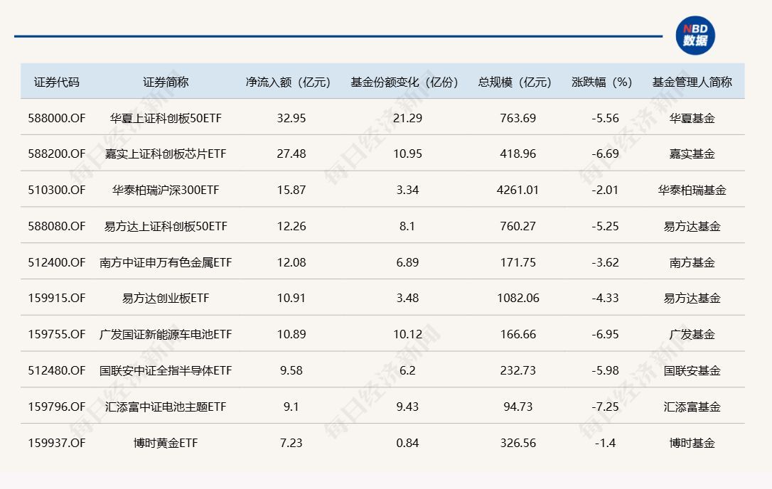 科创50ETF、科创芯片ETF上周五净流入额均超27亿元