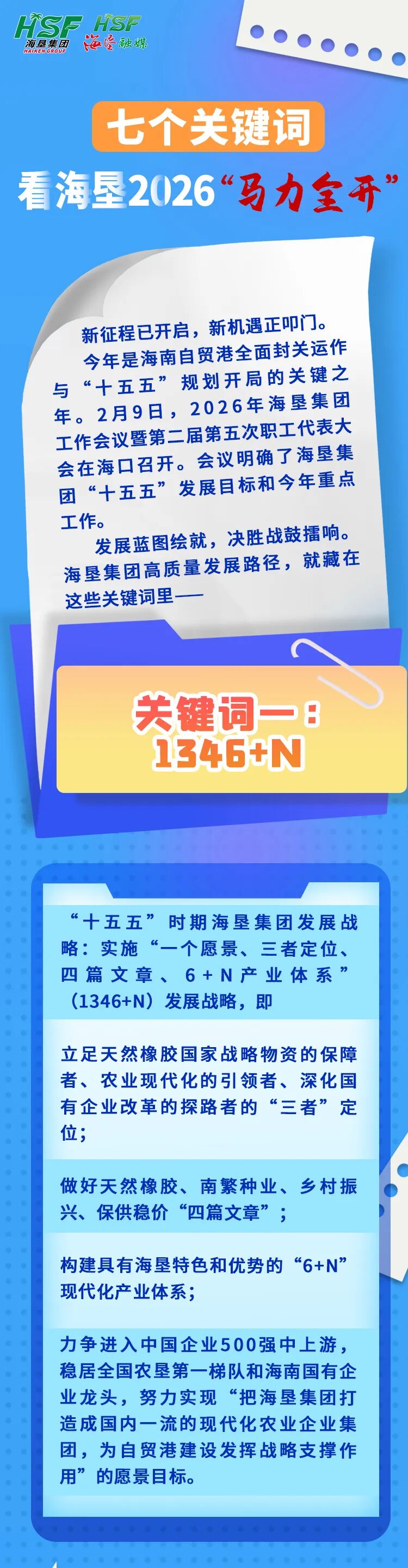 公司“十五五”战略规划总览 - 2026年2月9日,公司召开工作会议,明确了“十五五”发展目标和年度重点工作,标志着“十五五”规划开局[3][22] - 公司实施“1346+N”发展战略,即“一个愿景、三者定位、四篇文章、6+N产业体系”[6][23] - 战略愿景是打造国内一流的现代化农业企业集团,为海南自贸港建设发挥战略支撑作用[8][23] - 力争进入中国企业500强中上游,稳居全国农垦第一梯队和海南国有企业龙头地位[8][23] 公司核心战略定位 - 立足“三者”定位:天然橡胶国家战略物资的保障者、农业现代化的引领者、深化国有企业改革的探路者[6][23] - 做好“四篇文章”:天然橡胶、南繁种业、乡村振兴、保供稳价[7][23] - 构建具有公司特色和优势的“6+N”现代化产业体系[8][23] 公司发展优势 - 拥有六大优势:资产优势、产业体系健全优势、产业布局广泛优势、资本运作优势、人才队伍优势、垦地融合发展优势[10][24] “十五五”目标实现路径 - 实现目标必须坚定不移做到“八个聚焦、一个坚持”[11][25] - “八个聚焦”包括:聚焦国家战略保障(天然橡胶和南繁种业)、聚焦热带特色高效农业、聚焦保供稳价、聚焦土地资源运营、聚焦垦地融合和乡村振兴、聚焦新兴产业发展、聚焦创新引领、聚焦深化改革[11][25][26] - “一个坚持”是坚持党建引领,筑牢发展安全根基[11][26] 2026年重点工作方向 - 2026年将做到“十个坚持”,以推动“十五五”开好局[12][27] - “十个坚持”涵盖:坚持战略定力(保障天然橡胶安全)、坚持“向种图强”(践行种业振兴)、坚持推进特色产业体系(引领热带农业现代化)、坚持产业能力提升(支撑自贸港保供稳价)、坚持发挥土地要素优势、坚持心系“民之关切”(推动垦地融合与乡村振兴)、坚持改革驱动、坚持围绕政策优势谋发展(建设自贸港)、坚持创新引领(发展新兴产业)、坚持党建引领[12][13][27][28] 联农带农与社会责任举措 - 制定深化产业联农带农实施方案[14][28] - 大力实施“农垦社会化服务+地方”行动,打造智慧农业服务平台[15][29] - 配合出台垦区建房管理办法,解决农房报建难问题[17][31] - 推进垦区更新(一期)项目,稳妥抓好首批20个中心居民点建设[17][31] - 完成迈湾、天角潭水库移民生产安置,持续深化儋州木排村定点帮扶工作[18][31] 宏观发展背景 - 2026年是海南自贸港全面封关运作的关键之年[5][22]