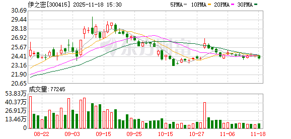 伊之密跌2.12%,成交额1.16亿元,主力资金净流出217.94万元