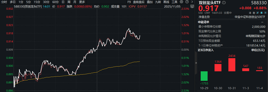 2、抓住板块轮动,避免"踏空":科技行情内部也存在轮动。宽基指数覆盖多个科技细分领域,有助于 投资者在行情轮动中把握整体趋势,避免因押错细分赛道而错失行情; 3、政策驱动,抓住行业上涨beta:国泰君安报告指出,本轮科技成长行情上涨,归结于政策的转向和 预期的改变,未来政策具体落地经济边际好转,将持续推动本轮行情,建议适时布局代表科技整体走势 的宽基指数,赚取行业向上Beta。 今日(11月5日)午后,创业板指领涨主要指数,百分百布局新质生产力的硬科技宽基——双创龙头 ETF(588330)场内价格盘中涨超1.2%,现涨0.88%。值得关注的是,上交所数据显示,该ETF近4日 连续吸金,合计金额4526万元,反映抄底科技资金稳步加仓! 细分方向来看,电力设备显著领涨,光伏龙头阿特斯20CM涨停,天合光能涨逾11%,阳光电源、晶科 能源大幅跟涨;电池龙头亿纬锂能涨超7%,宁德时代、中伟股份涨逾2%。 | 原号 | 名称 | 服院帽 ▼ | 開日图 | 申万一级行业 | 申万二级行业 | 申万三级行业 | 总市值 | 成交談 | | --- | --- | --- | --- | --- | --- | --- ...