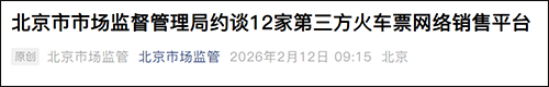 北京市市场监督管理局约谈12家第三方火车票网络销售平台
