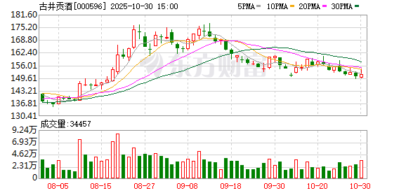 古井贡酒前三季度营收164.2亿,同比下降13.87%