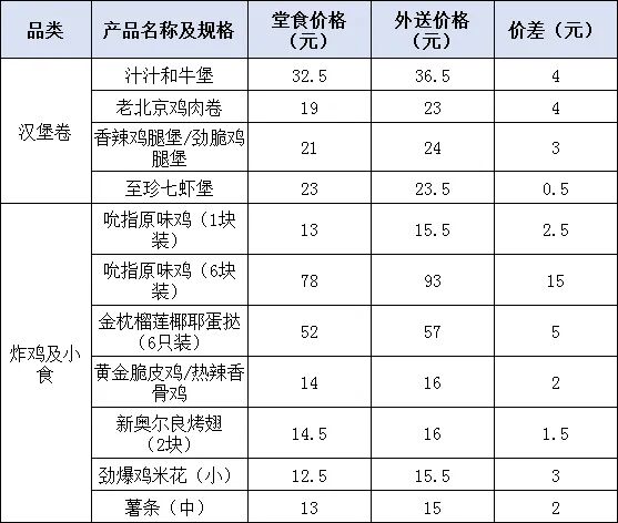 肯德基涨价了!外送产品平均贵0.8元
