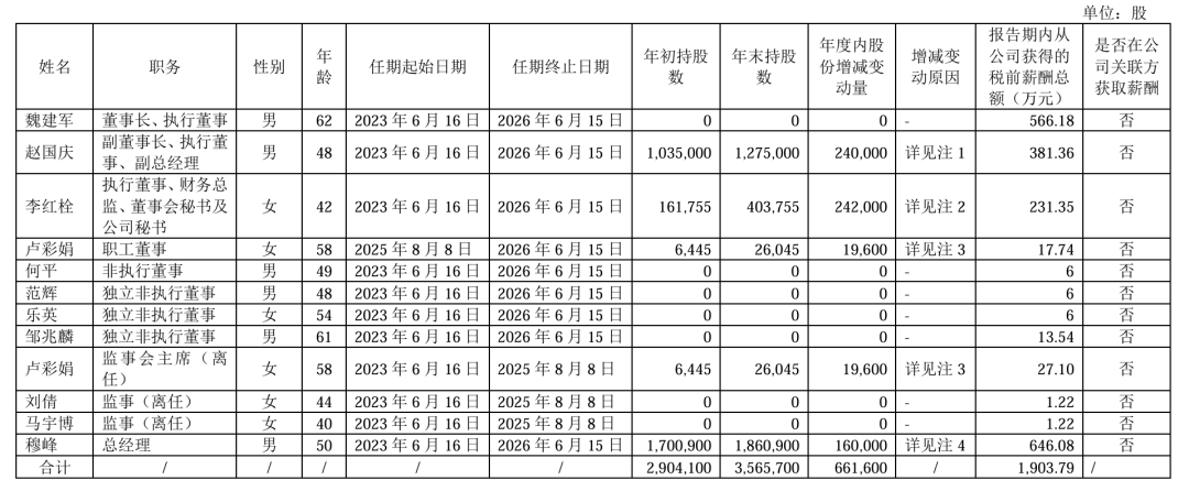 财务表现 - 2025年公司实现营业收入2228.24亿元,同比增长10.20% [1] - 2025年归属于上市公司股东的净利润为98.65亿元,同比下降22.07% [1] - 2025年扣除非经常性损益的净利润为60.59亿元,同比减少37.5% [1] - 截至2025年末,公司应收账款达95.99亿元,同比增长31.98% [1] - 截至2025年末,公司资产负债率为60.99%,同比下滑4.29个百分点 [1] 成本与费用 - 2025年销售费用激增43.93%至112.7亿元,主要因加速构建直连用户的新渠道模式及加大新车型、新技术的上市宣传和品牌提升 [1] - 2025年研发费用同比增长12.13%至104.3亿元 [1] - 2025年管理费用同比微降0.83%至47.47亿元 [1] 销量与生产 - 2025年公司总销量为132.37万辆,同比增长7.33% [2] - 哈弗品牌2025年累计销量758,554辆,同比增长7.41% [3] - WEY品牌2025年累计销量101,954辆,同比增长86.29% [3] - 长城皮卡品牌2025年累计销量181,660辆,同比增长2.57% [3] - 坦克品牌2025年累计销量232,713辆,同比增长0.74% [3] - 欧拉品牌2025年累计销量48,289辆,同比减少23.68% [2][3] - 2025年公司总产量为1,311,329辆,同比增长5.71% [3] 品牌战略与转型 - 欧拉品牌已完成战略转型,从面向“精致女性”升级为面向“全球年轻的都市生活家”,并从单一纯电品牌升级为全动力覆盖品牌,聚焦全球化、时尚化、年轻化 [3] - 欧拉品牌未来将通过全新平台赋能和多动力技术储备,致力于成为全球时尚精品车,深化国际化布局 [3] 高管薪酬与持股 - 2025年公司董事和高级管理人员薪酬合计1903.79万元(税前),较2024年的1800.6万元有所上涨 [1] - 副董事长赵国庆、财务总监李红栓、总经理穆峰均获得涨薪 [1] - 副董事长赵国庆年末持股1,275,000股,年度内增持240,000股 [2] - 财务总监李红栓年末持股403,755股,年度内增持242,000股 [2] - 总经理穆峰年末持股1,860,900股,年度内增持160,000股 [2] 市场表现 - 截至2025年3月27日收盘,A股长城汽车报20.88元/股,总市值1787亿元 [4] - 截至2025年3月27日收盘,港股长城汽车报12.48港元/股,总市值1068亿港元 [4]