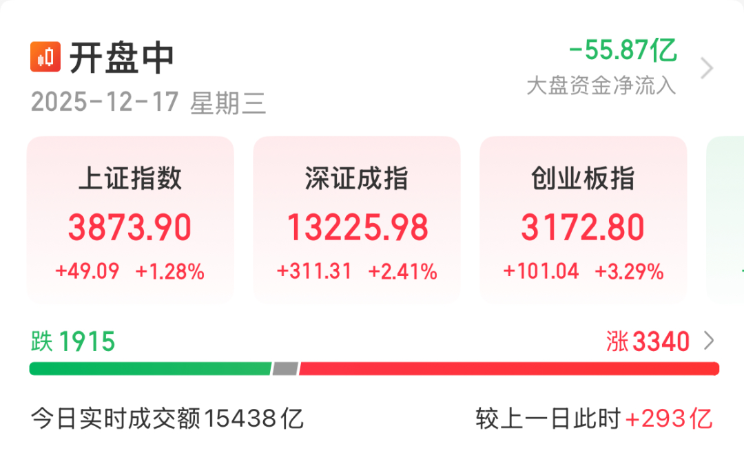 午后,A股三大指数走强。截至发稿,创业板指拉升涨逾3%,沪指涨1.28%,深证成指涨2.41%。大金融、算力硬件、有色金属、锂电等方向涨幅居前, 沪深北三市上涨个股超3300只,成交15438亿元,较上一日此时放量293亿元。 (文章来源:上海证券报) 金融股持续走强。截至发稿,华泰证券拉升涨近9%,中国太保、中国人寿、广发证券、东方财富、中信建投等纷纷走高。 此外,多只宽基ETF放量异动。沪深300ETF(510300)最近半小时成交超9亿元,800ETF(515800)、沪深300ETF易方达(510310)、嘉实沪深300ETF (159919)最近半小时均成交超1亿元。 ...