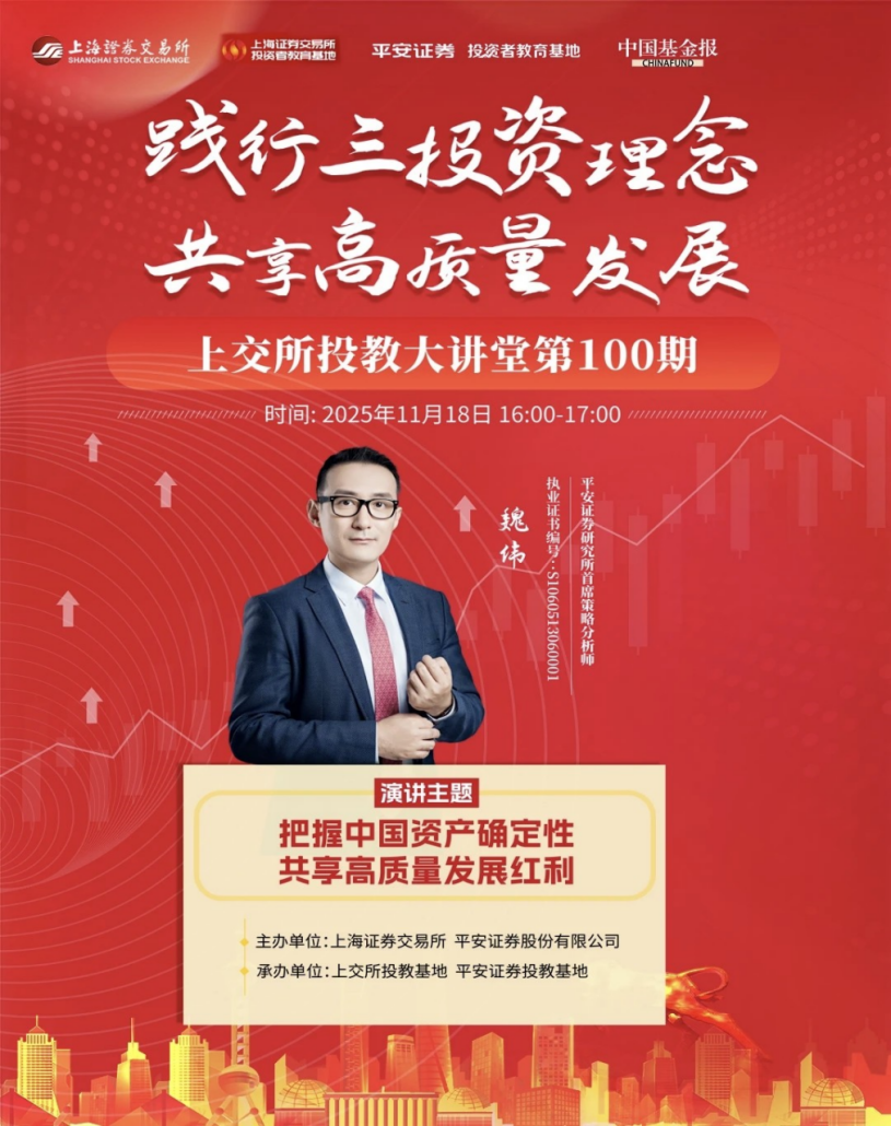 活动概况 - 上海证券交易所与平安证券联合举办“践行三投资理念,共享高质量发展”系列投教直播活动,主题为“把握中国资产确定性,共享高质量发展红利” [1] - 直播通过平安证券APP、平安好车主、中国基金报视频号、中国基金报APP同步进行,曝光量超350万,在看人数超15万 [1] - 活动还在河南周口、深圳和安徽合肥展开线下宣讲,覆盖近200余名投资者 [11] 全球宏观环境 - 2025年海外不确定性增加,主要经济体周期错位分化,贸易政策不确定性对美国经济负面影响较大 [3] - 全球货币政策分化,美联储2025年9月重启降息,欧央行2025年上半年持续降息,日央行年初启动加息 [3] - 国际地缘局势复杂反复,如俄乌、中东局势仍存变数 [3] - 对比复杂多变的外部环境,中国宏观经济稳健和高质量发展愈发重要 [3] 中国经济表现 - 2025年中国经济整体保持稳定增长,延续高质量向新向好态势 [4] - 生产端工业生产表现强劲,高技术制造业、装备制造业增长较快,铁路船舶航空航天制造业、电气机械制造业、汽车制造业、计算机通信电子制造业增长突出 [4] - 需求端出口保持韧性,高附加值产品增速较快,内需受“两重”“两新”政策支持,居民消费较去年改善,制造业和基建投资保持韧性增长 [4] - 政策层面坚定“高质量发展”道路,落实落细更加积极的财政政策和适度宽松的货币政策,支持新质生产力发展、全方位扩大内需 [4] 产业趋势与新质生产力 - 人工智能产业中,国产算力自主可控进程加快,半导体、云计算、光模块等领域成为关注重点,AI应用在垂类应用、智能驾驶、人形机器人等领域有望加速发展 [6] - 半导体产业自主可控趋势显著,已培育一批有竞争力的企业,产业链整体实力持续增强,在设计、设备、先进制程等方面仍有较大发展空间 [6] - 中国新能源车企具备全球竞争力,技术、产品领域有优势,主流车企正加快布局智能驾驶 [6] - 生物医药领域国产创新药由量变到质变,BD交易火热,创新能力获MNC认可,更多公司取得商业化突破 [6] - 新能源行业中光伏产业全球领先,产业链各环节产能占全球较大份额,“反内卷”政策有望改善行业供需和盈利基本面 [7] - 消费领域受“以旧换新”政策支持和居民消费结构转型推动,Z世代需求提升,IP、宠物、美妆等新消费主题涌现 [7] 资本市场改革 - 中国资本市场是支持经济转型升级的重要力量,政策强调持续稳定和活跃资本市场并重,高质量发展是未来主线 [8] - A股市场服务实体经济效能持续显现,政策加大推进科创板、创业板等领域改革,聚焦支持新质生产力,IPO、并购重组、港股融资等资源向科技创新领域倾斜 [8] - 债券市场创新推出“科技板”,在统一规则、拓宽发行主体范围等方面实现政策升级,增强服务科技创新能力 [8] - 2025年市场资金面出现新变化,中长期资金入市力度加大、公募基金高质量发展改革深化,是稳定市场的重要力量 [8] 资产配置与投资主线 - 2025年在全球资产分化波动环境下,人民币资产吸引力提升,A股市场稳中有进、赚钱效应持续扩散 [10] - 中长期投资主线包括新质生产力领域,如人工智能、医药生物、军工、智驾等产业 [10] - “反内卷”政策受益行业,包括光伏、锂电池、新能源汽车等新兴产业,以及钢铁、煤炭等传统周期行业 [10] - 消费新趋势领域,家电、新消费等板块在政策支持和消费升级双轮驱动下呈现稳健发展态势 [10] - 红利策略在当前低利率市场环境仍具配置价值 [10]