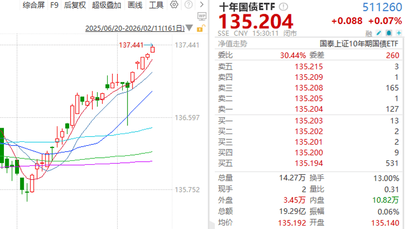 十年国债ETF(511260)飘红,债市配置价值凸显