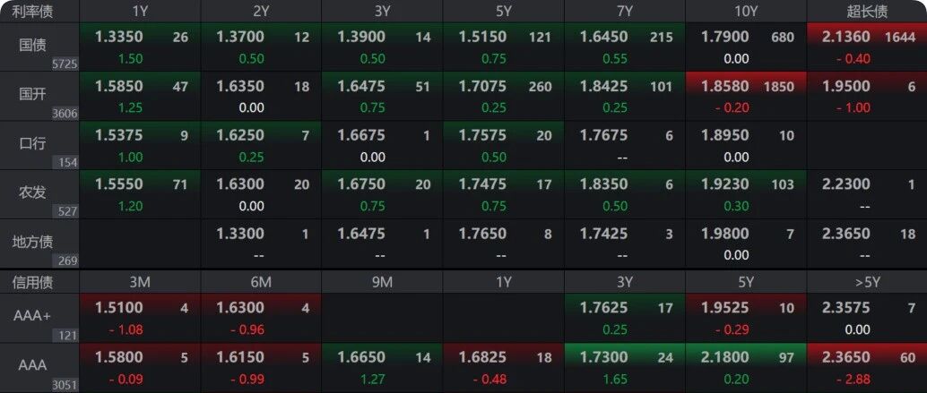 市场核心驱动力 - 政策意图或方向上的预期差是市场波动的根本推动力,其边际变化对市场影响显著 [1] 宏观经济与市场情绪 - 10月官方制造业PMI为49,明显低于预期的49.6和前值49.8,经济数据不及预期对市场情绪产生影响 [4][6] - 股市震荡走低,与疲弱的经济数据相呼应,风险资产表现不佳 [4][6] - 白酒行业龙头公司利润下跌近20%,反映出消费行业面临压力,其疲软表现被视为经济活动的晴雨表 [7] 货币政策与流动性 - 央行通过公开市场操作实现资金净投放1871亿元,维持流动性合理充裕 [4] - 银行间资金面均衡偏松,主要回购利率下行,其中DR001位于1.32%附近,DR007位于1.46%附近 [4] - 央行官员文章提及增强政策利率作用并收窄短期利率走廊宽度,当前利率走廊为1.2%-1.9%,政策动向引发市场关注 [7] 债券市场表现 - 债市整体表现稳健,长债收益率小幅下行,10年期国债收益率最低触及1.7835%,收盘于1.7925%,当日下行1个基点 [4][6][7] - 利率债各期限品种收益率多数下行,其中国开债10年期收益率下行1.85个基点至1.8635%,交投活跃 [7][9] - 信用债收益率亦呈现下行趋势,高评级品种如AAA级1年期收益率下行1.26个基点至1.6900% [9]