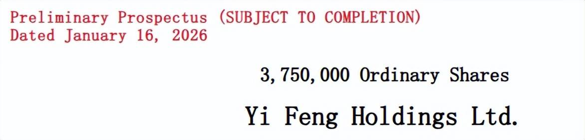 易丰控股上市申请与业务概况 - 公司于2026年1月16日向SEC公开递交招股书,拟以代码YIFE在纽交所上市,最早于2025年8月29日已秘密递交申请 [1] - 公司计划以每股4至6美元发行375万股,最高募资约2250万美元 [3] - 公司总部位于香港,是一家建筑分包商,核心业务包括土木工程、临时设施服务、钢结构切割拆除,并通过销售回收钢材获取收入 [3] 易丰控股财务表现 - 截至6月30日的2025财年,公司营收为777万美元,较2024财年的52万美元增长1,178% [4] - 2025财年净利润为105万美元,较2024财年的3.7万美元增长2,772% [4] - 2025财年毛利润为160万美元,较2024财年的6.99万美元增长2,188%;营业利润为126万美元,较2024财年的3.62万美元增长3,375% [4] 易丰控股发展历程与股权结构 - 公司主体易丰控股有限公司于2022年10月在香港成立,并于2025年7月在开曼群岛成立上市主体 [6][7] - IPO前,控股股东Zhenghao Group Limited持股60.2%,Chi Fung Mok持股15.0%,Delta Mind Ltd持股5.0% [8] Red Wisdom上市申请与业务概况 - 公司于2026年1月16日向SEC公开递交招股书,申请在纽交所或纳斯达克上市,最早于2025年8月12日已秘密递交申请 [9] - 公司计划以每股4至5美元发行425万股,最高募资约2125万美元 [11] - 公司总部位于香港,是一家多渠道营销平台,提供网红营销和在线精准营销服务,帮助品牌触达年轻消费群体 [11] Red Wisdom财务表现 - 截至3月31日的2025财年,公司营收为874万美元,较2024财年的305万美元增长187% [12] - 2025财年净利润为98万美元,较2024财年的18万美元增长449% [12] - 截至2025年9月30日的六个月,公司营收为1105万美元,净利润为93万美元 [12] Red Wisdom发展历程与股权结构 - 公司主体Red Wisdom Creation (Hong Kong) Limited于2019年8月在香港成立,并于2025年2月在开曼群岛成立上市主体 [15] - IPO前,创始人Chen Qiu通过持有A类及B类普通股,合计拥有97.87%的投票权 [16]