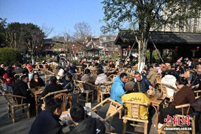 成都民众喝坝坝茶享受冬日暖阳