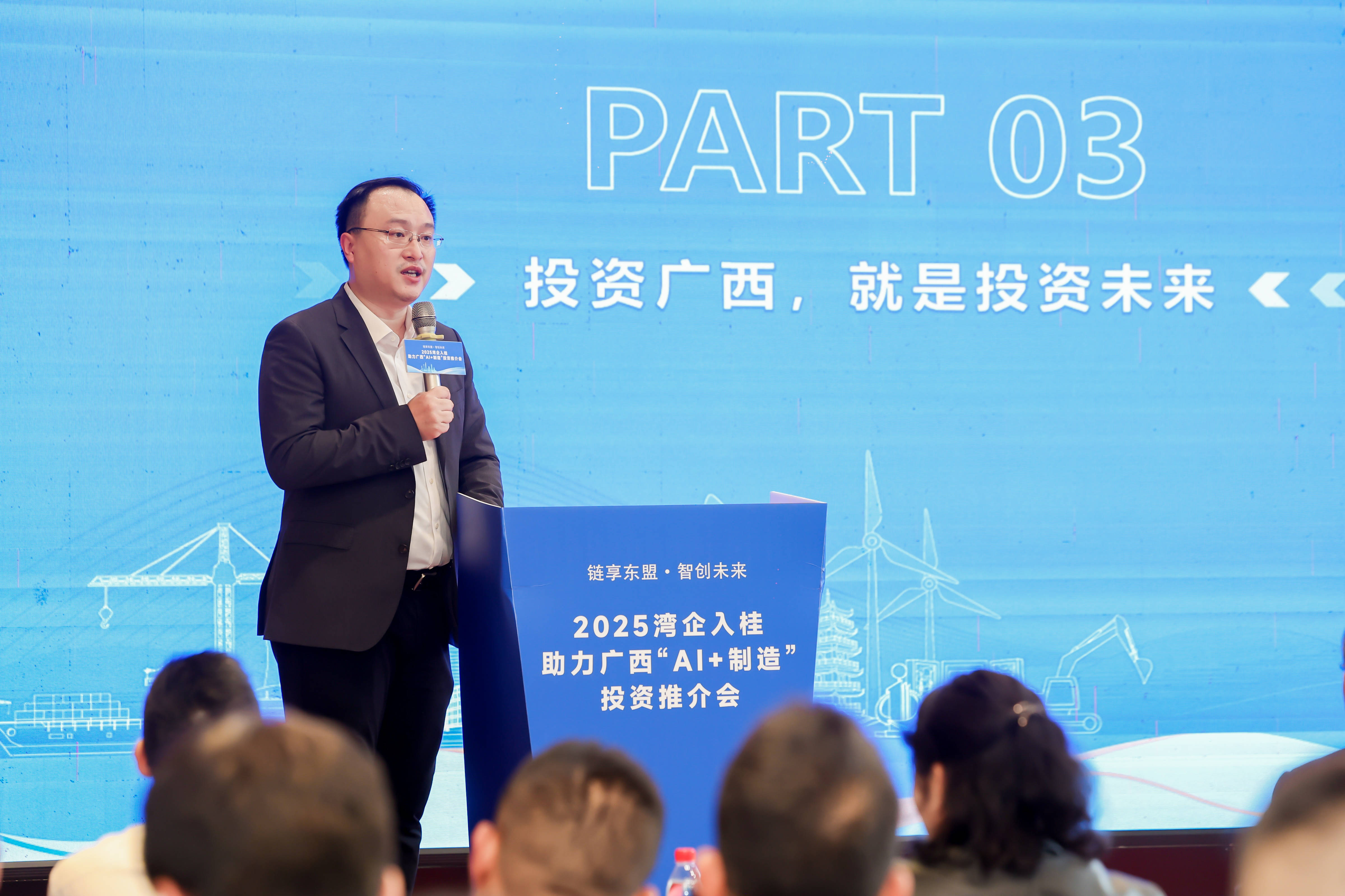 南都讯 记者王睦广 通讯员黄英杰 12月10日,"链享东盟·智创未来"2025湾企入桂助力广西"AI+制造"投 资推介会在深圳举办。本次推介会由广西壮族自治区人民政府驻广州办事处、自治区园区发展和投资促 进服务中心主办,自治区对接粤港澳大湾区建设综合服务中心承办。活动旨在贯彻落实广西关于加快推 动人工智能高质量发展的决策部署,对接粤港澳大湾区建设,助力广西打造面向东盟的人工智能合作高 地。 在项目路演环节,6家大湾区企业的代表依次介绍公司发展及产品优势,与参会嘉宾共同探讨多元合作 模式及落地路径。据悉,活动推动了多个项目与广西有关地市达成合作意向,涵盖具身智能机器人、 AI翻译、垂直轴微风发电系统、再生资源智能回收平台等多个领域。有关项目兼具技术领先性与产业 带动性,将为广西人工智能产业发展注入新动力。 本次推介会吸引了人工智能领域的60余家上市公司、专精特新企业、高新技术企业及投融资机构参加, 共商投资合作。 会上播放的广西投资宣传片,生动展现了广西的投资活力与产业潜力。广西壮族自治区园区发展和投资 促进服务中心副主任王鸣涛分享了广西在连接国内市场与东盟市场之间所开辟的人工智能发展赛道及商 机,诚邀企业共同 ...