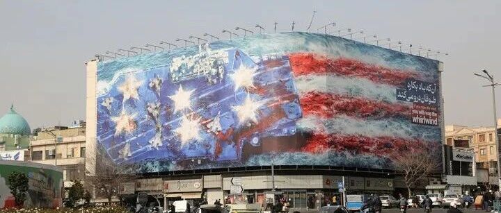 伊朗出手 监控石油“咽喉”通道!伊立巨幅画暗指美航母被炸:配文“煽风者将得到风暴”!