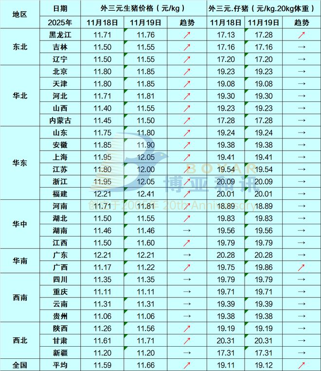 【BOYAR监测】生猪市场每日简评【11.19】
