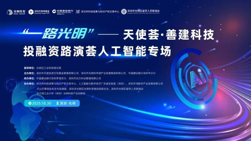 深圳商报·读创客户端记者 刘芳 10月30日,"一路光明"天使荟·善建科技投融资路演荟人工智能专场活动,在光明科技金融大厦举行。作为光明科发集 团打造的投融资服务品牌,"一路光明"聚焦重点产业集群,每期围绕一个优势产业开展专题路演,通过汇聚前沿项目 与专业资本,为创新的火花点亮未来。 能用,强链聚能,打造AI技术应用的"示范场"。2024年,光明人工智能上下游企业产值规模超300亿元,集聚了杉川 机器人、劢微机器人、工匠社等一批优质企业。同时,联合华为、深智城等企业打造智慧交通、智慧医疗、智慧应急 等示范场景,让AI技术有地可用、有处可试。 活动现场,光明科学城人工智能联创基金正式启动,这不仅是光明区首支聚焦人工智能领域的专项早期投资基金,更 是光明区抢占AI产业制高点、撬动未来发展的重要落子。该基金将依托光明科学城科技成果转化平台,探索"空间+服 务+资本+交易"一体化服务模式,为AI硬科技项目提供从孵化到转化的全链条支撑。 现场同步举办人工智能专场路演,吸引力合创投、招商致远、英诺创投、梅花创投、国信弘盛等约20家知名投资机构 及上市公司参与,多个项目达成初步投资意向,实现"基金启航即对接、生态搭建即见效 ...