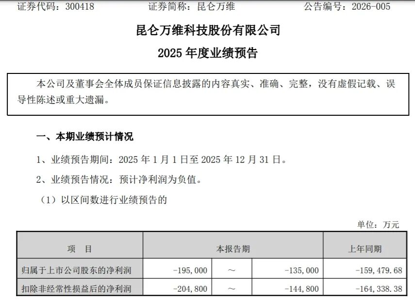公司2025年业绩预告 - 2025年归属于上市公司股东的净利润预计亏损13.5亿元至19.5亿元,扣除非经常性损益后的净利润预计亏损14.48亿元至20.48亿元,延续了2024年的亏损态势[1] - 尽管预计亏损,但2025年公司收入预计同比增长超过40%,海外收入占比进一步提升,增长势头较2024年15.20%的营收增速显著加快[4] 亏损原因与财务表现 - 亏损主因是持续加大市场推广和研发投入,2025年前三季度销售费用高达28.91亿元,同比激增105.75%,直接抵消了主业增长成果[5] - 2025年第三季度曾实现单季扭亏,归母净利润达1.9亿元,同比增长180.13%,但第四季度预计再度陷入亏损,推算区间为-6.85亿元至-12.85亿元,业绩低于投资者预期[5] - 2025年上半年互联网业务营收37.01亿元,同比增长52.01%,但营业成本增幅达108.98%,毛利率同比下滑8.27个百分点[12] 业务构成与商业化 - 业务覆盖AGI与AIGC、Opera海外信息分发、短剧平台、社交娱乐等核心领域,遍及全球100多个国家和地区[4] - 已构建起用户充值、会员订阅、API调用、广告、搜索、虚拟道具付费等多元化商业变现体系[4] - 2025年上半年短剧平台业务营收5.82亿元,毛利率高达83%,成为亮点[13] - 分产品看,上半年广告业务营收同比增长61.05%,成本增幅90.16%,毛利率下滑8.48个百分点;海外社交网络业务收入同比增长10.20%,成本增幅高达124.54%,毛利率下滑12.95个百分点[12] 研发与市场投入 - 为维持AI领域竞争力持续高额投入,2023年研发投入9.68亿元,2024年增至15.43亿元,2025年前三季度已投入12.7亿元,研发费用率始终维持在22%以上[12] - 为抢占海外市场,营销投入居高不下[12] 公司发展历程与战略转型 - 公司创始人周亚辉,2007年再度创业瞄准网页游戏,2009年带领公司开拓海外市场获得成功[6] - 公司于2015年成功登陆创业板[7] - 上市后开启多元化布局,2016至2017年分两次斥资2.45亿美元收购同性社交平台Grindr Inc.,并联合360公司以12.3亿美元收购浏览器Opera[7] - 2021年跟进元宇宙热潮,宣布加速布局该领域[9] - 2022年增设新能源投资板块,通过子公司出资3亿元收购绿钒新能源60%股权[10] - 2023年,在ChatGPT掀起AI热潮后,公司高调宣布“All in AGI和AIGC”,全面向AI转型,启动自研大模型项目,同年联合发布“天工”大语言模型,并投资芯片企业艾捷科芯发力算力芯片[10] 市场反应与股价表现 - 2023年宣布“All in AGI和AIGC”后,2023年1至5月公司股价暴涨360%以上[10] - 2023年6月,创始人前妻李琼宣布拟减持不超过3586.86万股,最终套现约13亿元,随后以2.5%的年利率将该笔资金借给公司,引发监管问询和市场质疑[12] 机构观点与未来展望 - 有券商将公司称为“A股稀缺大模型及出海应用龙头”[1] - 浙商证券预测,2025年公司短剧业务收入将达16.8亿元,同比增长900%,并预计该业务在2026-2027年将持续加速增长,成为核心现金流引擎[13] - 浙商证券预测公司2026年亏损将收窄至0.94亿元,2027年实现扭亏为盈,并给出932亿元目标估值[13]