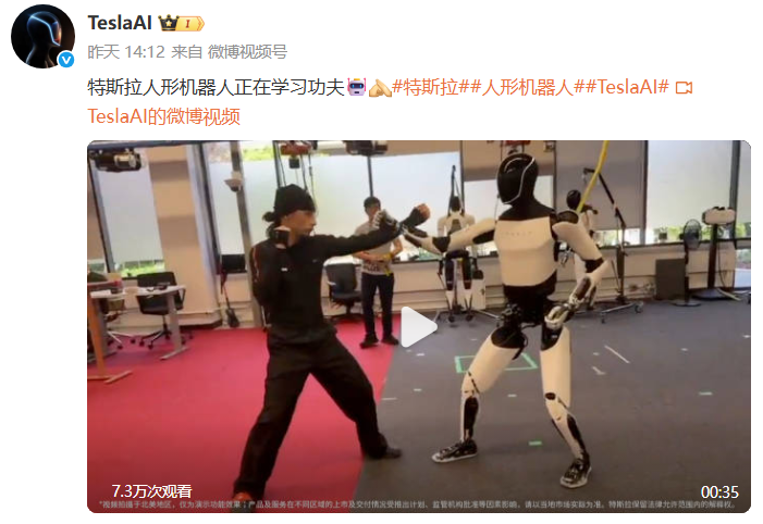马斯克刷屏。 10月4日,特斯拉公司首席执行官埃隆·马斯克在社交平台发布了一段该公司开发的人形机器人"擎天柱 (Optimus)"学习功夫的视频。 视频显示,"擎天柱"正与专业人士学习功夫,它展示了用于自卫的武术技巧,且并非单纯模仿专业人士 的动作,而是精准应对每个招式并进行反击。有网友提问"擎天柱"是由远程操控还是人工智能(AI)驱 动的。马斯克回应称,"AI,而非遥控操作"。 据了解,"擎天柱"是特斯拉的人形机器人项目,数年前首次对外公布,而在过去一年中,该项目的重要 性显著提升,也成为特斯拉更核心的关注焦点。 9月7日,特斯拉开通"TeslaAI"的官方微博,认证为"特斯拉官方账号",并发布首条微博展示其人形机器 人。当天,特斯拉发布了两张人形机器人的照片,并配文:"我一直在努力改善自己的身材"。 9月30日,"TeslaAI"再发文,特斯拉正在努力扩大人形机器人的规模,计划2025年底推出第三代,并在 2026年开始量产。马斯克预计2030年前将年产100万台。 9月初,特斯拉发布了"宏图计划第四篇章"(Master Plan Part IV,简称"宏图计划4.0"),预示着特斯拉 未来发展规划的重大 ...