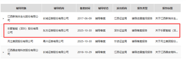 (原标题:周末,鸿蒙机器人,大消息!继宇树之后,这家机器人公司启动IPO) 继宇树科技之后,第二家冲击A股上市的人形机器人公司曝光。 "夸父"鸿蒙机器人 以"0号"火炬手身份亮相 中国证监会网站显示,日前,乐聚智能(深圳)股份有限公司(下称"乐聚智能"或"公司")在深圳证监局办 理辅导备案登记,辅导券商为东方证券。根据备案报告,公司将于2026年3月至6月完成辅导工作。 乐聚智能也是自宇树科技之后,第二家启动在A股上市的人形机器人公司。 | | 辅导对象 | 辅导机构 | 备客时间 | 辅导状态 | 派出机构 | 报告类型 | 报告标题 | | --- | --- | --- | --- | --- | --- | --- | --- | | > F | 江西新瑞丰生化股份有限公 | 长城正弹股份有限公司 | 2017-06-09 辅导管窗 | | 江西证监局 | | 辅导进履情况报告 关于江西新潟丰生... | | 公司 | 乐聚智能 (深圳) 股份有限 | 东方证券股份有限公司 | 2025-10-30 辅导备案 | | 爱斯证监局 | 辅导管器报告 关于乐聚智能(深 ... | | | | 月立集团股份 ...