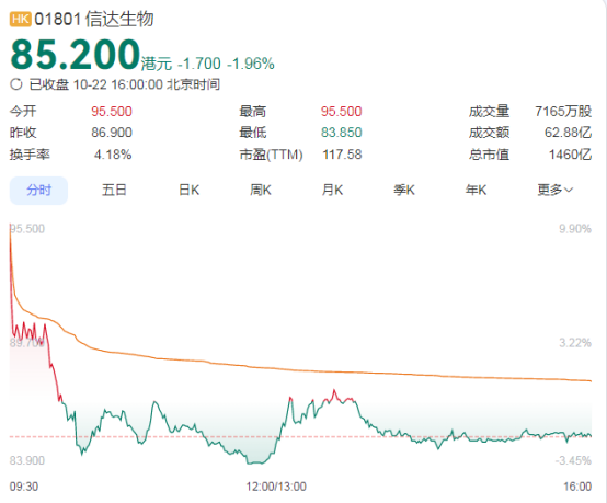 港股上市公司信达生物与全球药企武田制药的重磅合作并未能引爆股价。 信达生物10月22日公告称,公司与日本药企武田制药达成全球战略合作,共同开发癌症治疗药物,此次交 易总额最高可达114亿美元。 不过,该上百亿美元的交易并未引爆信达生物的股价。10月22日,信达生物开盘涨9.9%,随后持续下跌 并翻绿,截至收盘,信达生物的股价跌1.96%,报85.2港元/股。 114亿美元大单 10月22日,信达生物宣布与武田制药达成重磅全球战略合作,共同加速推进信达生物新一代IO与ADC疗 法的全球开发,打造颠覆性癌症治疗方案,造福全球患者。 据了解,此次合作将充分发挥双方的核心协同优势,加速信达生物IO及ADC在研药物的全球开发进程,包 括:(1)IBI363,一款处于III期临床研究阶段的全球首创PD-1/IL-2α-bias双特异性抗体融合蛋白, IBI363已在多项临床研究中展现出强劲广谱的抗肿瘤活性,有望成为新一代IO基石疗法;(2)IBI343, 一款处于III期临床研究阶段的同类最优CLDN18.2ADC;(3)IBI3001,一款处于I期临床研究阶段的全球 首创的EGFR/B7H3双抗ADC。 根据协议,信达 ...