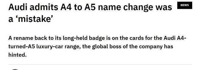 奥迪承认:将 A4 更名为 A5 是一个“错误”