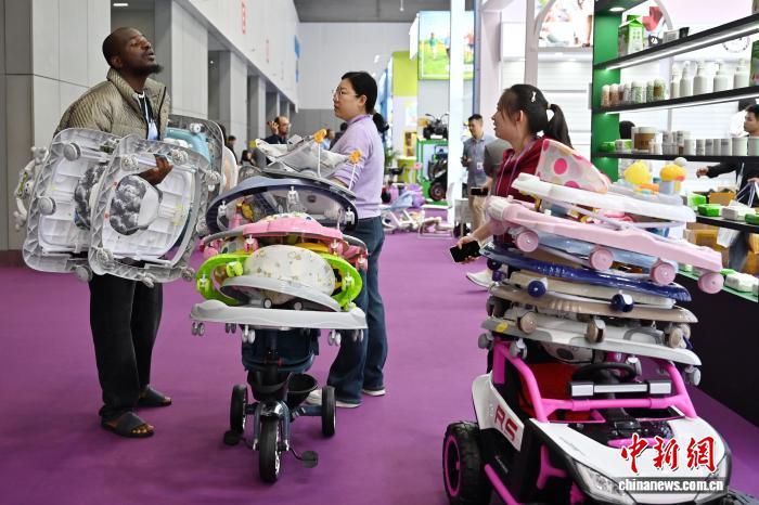 第138届广交会第三期 采购商开启"扫货"模式 图为境外采购商(左)买下一展位的婴儿车。中新社记者 陈楚红 摄 图为境外采购商采购婴儿车和玩具车。中新社记者 陈楚红 摄 图为境外采购商(右)以600元人民币买下一辆电动玩具车。中新社记者 陈楚红 摄 图为境外采购商(左二)在挑选衣服。中新社记者 陈楚红 摄 广告等商务合作,请点击这里 本文为转载内容,授权事宜请联系原著作权人 中新经纬版权所有,未经书面授权,任何单位及个人不得转载、摘编或以其它方式使用。 关注中新经纬微信公众号(微信搜索"中新经纬"或"jwview"),看更多精彩财经资讯。 图为境外采购商展示采购的食品。中新社记者 陈楚红 摄 图为境外采购商采购玩具等商品。中新社记者 陈楚红 摄 来源:中国新闻网 编辑:董文博 ...