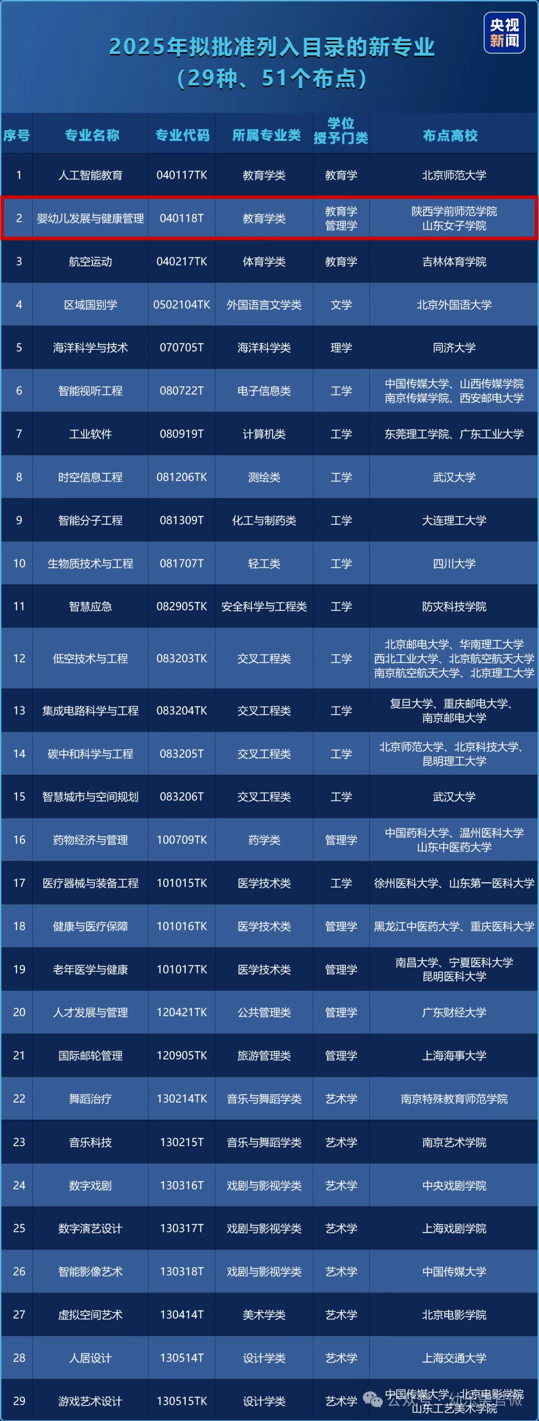 陕西一高校开设"婴幼儿发展与健康管理"专业 培养托育人才 中新网西安10月13日电 (记者 党田野)位于西安城南的陕西学前师范学院是一所以教师教育为主、以培 养学前教育师资为特色的高校。2025年4月,陕西学前师范学院获批全国首个普通本科"婴幼儿发展与健 康管理"专业。今年开学季,学校迎来了该专业的首批新生。 图为陕西学前师范学院"婴幼儿发展与健康管理"专业学生正在上课。党田野 摄 近日,陕西学前师范学院副校长李明军在接受记者采访时表示,该专业的课程体系注重理论与实践深度 融合,旨在培养既懂专业又善应用的复合型人才。 "根据国家卫健部门统计,我国现有3岁以下婴幼儿约3000万名,其中超过三成家庭存在入托需求。然 而,全国婴幼儿实际入托率仅为7.86%,托育服务供给与需求之间存在显著差距。"李明军称,面对这 一现实,学校开设"婴幼儿发展与健康管理"专业,着力培养兼具专业素养与管理能力的复合型人才,为 国家托育事业的高质量发展提供坚实支撑。 编辑:张澍楠 广告等商务合作,请点击这里 记者走进陕西学前师范学院看到,"婴幼儿发展与健康管理"专业的学生正在老师的带领下,学习理论知 识、体验VR教学设备。校方介绍,截至目 ...
