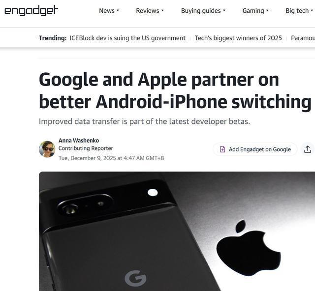 谷歌与苹果罕见联手,操作系统级功能将简化安卓与iOS设备间的数据迁移