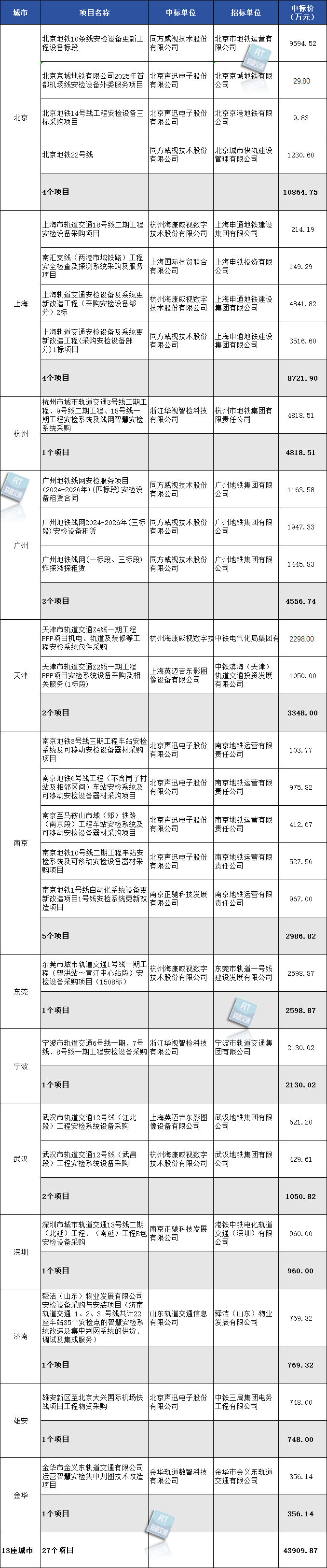 4.39亿!2025年中国城市轨道交通安检设备中标统计