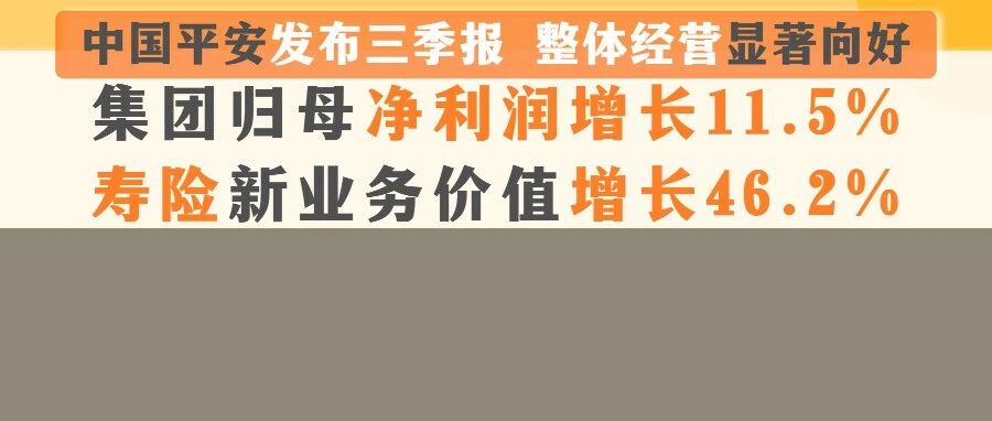 中国平安发布三季报,集团归母净利润增长11.5%,寿险新业务价值增长46.2%,整体经营显著向好