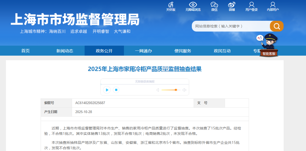 2025年上海市家用冷柜产品质量监督抽查结果公布