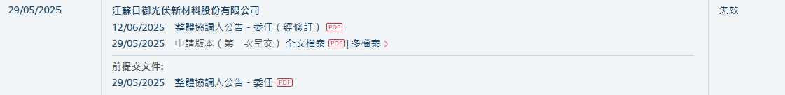 江苏日御光伏新材料股份有限公司(简称:日御股份)于5月29日所递交的港股招股书满6个月,于11月29日失效,递表时国泰君安国际为其独家保荐人。 招股书显示,日御股份是中国江苏省无锡市的一家导电银浆料与金属化浆料方案供应商,专注导电光伏银浆制造和供应。凭借公司的研发实力和行业经验, 公司能够生产用于各类型光伏电池的导电光伏银浆,包括TOPCon电池、xBC电池及PERC电池。根据灼识咨询报告,公司是一家全球领先的导电光伏银浆供 应商,公司(i)按2022年至2024年的收益增长计算在2024年全球五大光伏银浆制造商中排名第一;及(ii)于2024年在全球光伏银浆业按收益及销量计排名第四。 公司于2024财政年度的收益及销量分别占全球导电光伏银浆业总收益约4.8%及占总销量4.8%。 ...