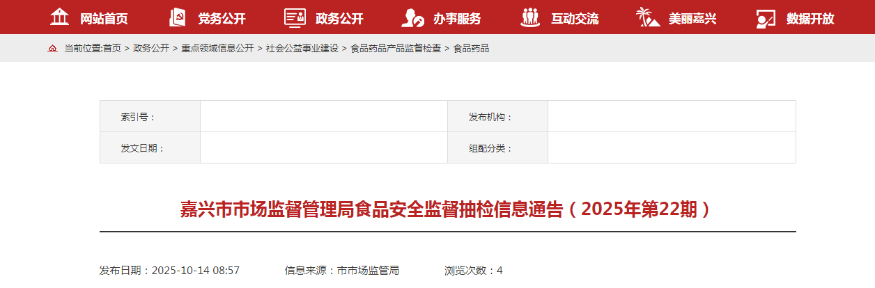 浙江省嘉兴市市场监督管理局食品安全监督抽检信息通告(2025年第22期)