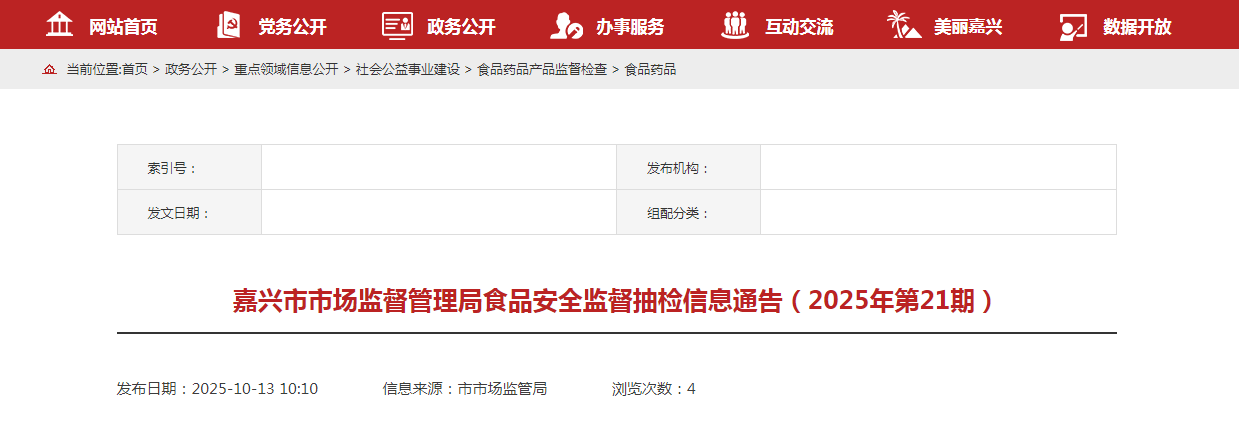 浙江省嘉兴市市场监督管理局食品安全监督抽检信息通告(2025年第21期)