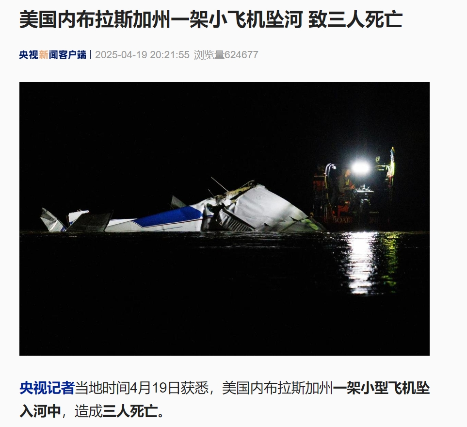 美国近期航空事故概况 - 4月18日,美国内布拉斯加州一架小型飞机坠入普拉特河,机上三人全部遇难,事故原因尚在调查中[1] - 4月10日,美国纽约市一架观光直升机坠入哈得孙河,机上飞行员及来自西班牙的一家五口共六人全部遇难[4] 纽约直升机坠毁事故细节 - 事故直升机于当地时间4月10日下午3时左右从纽约市中心起飞,沿曼哈顿天际线飞行,计划飞往自由女神像,飞行不到18分钟后发生事故[4] - 社交媒体视频及目击者描述显示,直升机尾翼和螺旋桨在空中脱落,部分碎片在空中翻滚[5] - 美国总统特朗普就事故发文,称录像“令人毛骨悚然”,并称交通部长及其团队正在现场处理[5] 遇难者身份信息 - 纽约直升机事故中遇难的西班牙家庭为西门子交通集团高管阿古斯丁·埃斯科瓦尔夫妇及其三名子女[4] - 阿古斯丁·埃斯科瓦尔已在西门子工作超过27年,2022年曾任西门子西班牙区总裁兼首席执行官,事故发生时其职务为西门子交通集团负责铁路基础设施的全球首席执行官[4]