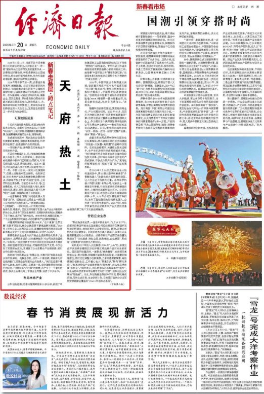 2月20日,《经济日报》以《天府热土》为题,头版头条关注成都,报道成都高质量发展生动实践。 2026年2月 20 □ 农历两年年正月初四 2018年2月11日,习近平 四川天府新区时指出,天府新区是 冠作静圖之胜家解禁為三年最佳製"說 的增长表,建设内陆开放会论坛 26年基年生可能 阳在线 所有时期 经济巨投 在外游用品, 1 - 高 安徽陵,未解原因置,诗令 移不断深度精度的在心,因此 手田市出水寺 出 汇聚创新要素 午后的兴隆周肢光耀燃,水面上 阵水马马II)。成都利创生态岛(以下简称 "和创新"上班代风格的歌曲家的意思 展,玻璃幕墙头原给天光水色,哪留生料 市规划中,科创品的定位 如要素的失系地 创新成果的资源地 家的会容厅,也是创新产 FRENCE 如果的古城区十三年度的一 术 2000 即封出 名 国度 程 公民进 "这个富意"世界 的数字很励志,做企业就是要不断挑战的新的意。"202 年企业人驻科创品以来,新建数量网络科技有限公司 新身数影 的主业是为农产 一个业理供服务化妆 大、成果找市场的"双向器榜制的"对公司发展的益假 出投资数千万元的明日体体面临体系不难说 "会宣传 大有年度项目市场 期货 ...