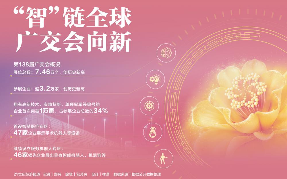 魔法原子不是唯一一家盯上海外市场的机器人企业。在此次广交会继续设立的服务机器人专区,参展企业达到46家。如果把观察视野扩大到整 个展馆,本届广交会拥有高新技术、专精特新、单项冠军等称号的优质企业首次突破1万家,创历史新高。以机器人、人工智能等为代表的高 新技术产品正成为这场"中国第一展"的"关键主角"。 作为中国外贸的"晴雨表",广交会上的新变化也折射出当前外贸发展的新趋势。刚刚公布的海关统计数据显示,2025年前三季度,全国出口总 额达到19.95万亿元,同比增速达到7.1%,其中出口高技术产品达到3.75万亿元,同比增长11.9%,对同期整体出口增长贡献率超过三成。中国 出口结构正加速向高技术、高附加值产品升级。 新技术、新产品的涌现为企业带来了新市场。截至10月13日,本届广交会已吸引来自218个出口市场的超24万名采购商预登记,环比增长 10%。"今天上午来我们展位对接的采购商目测一两百号人肯定有了,基本上以共建'一带一路'国家采购商为主。"广东凌度智能科技发展有限 公司(下文简称:凌度智能)副总经理黄健告诉南方财经记者。 10月15日,第138届中国进出口商品交易会(广交会)在广州开幕。 上午11时 ...