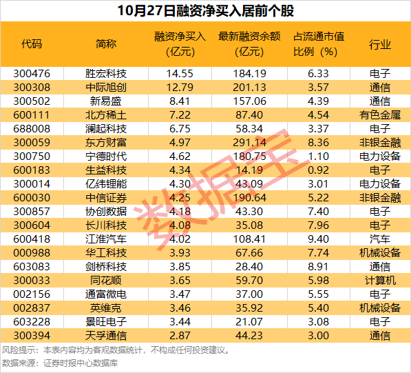 首批科创成长层企业上市,N奕材-U开盘涨幅最大 今日(10月28日),4家新股同日上市,单日新上市家数创出年内新纪录,此前的9月25日,最多有3只 新股同日上市。 从开盘价来看,3只科创板新股中,N奕材-U涨幅最大,开盘涨361.48%,N禾元-U开盘涨202.82%,N必 贝特-U开盘涨175.03%,这3只新股均为未盈利企业上市,自上市之日起纳入科创成长层。 西安奕材专注于12英寸硅片的研发、生产和销售,基于2024年月均出货量和截至2024 年末产能规模统 计,公司是中国大陆第一、全球第六的12英寸硅片厂商,前述月均出货量和产能规模全球同期占比约为 6%和7%。 北交所的N泰凯英开盘涨154%。 根据发行安排,今日可申购德力佳、中诚咨询。 德力佳主要从事高速重载精密齿轮传动产品的研发、生产与销售,下游应用领域目前主要为风力发电机 组,核心产品为风电主齿轮箱。 中诚咨询主营业务为向客户提供工程造价、招标代理、工程监理及管理、BIM服务、工程设计等专业技 术服务及全过程咨询服务。 19股杠杆资金加仓超3亿元 截至10月27日,市场融资余额合计2.46万亿元,较前一交易日增加244.69亿元。 具体到个股,1 ...