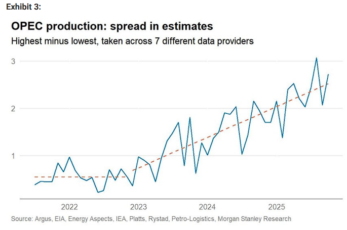智通财经APP获悉,欧佩克+决定暂停增产后,摩根士丹利上调了短期油价预期。该行于周一表示,已 将2026年上半年布伦特原油价格预期上调至每桶60美元,较此前的57.50美元有所上调。欧佩克+则在上 周日宣布,计划在明年第一季度暂停增产。这是该组织自今年4月开始恢复此前暂停的供应以来,首次 暂停增产。 包括马蒂恩·拉茨和夏洛特·弗金斯在内的分析师在报告中表示:"即便欧佩克的这一公告并未改变我们对 产量前景的基本判断,但它传递了一个重要信号。有了欧佩克的参与,油价波动性将降低。" 摩根士丹利还指出,欧佩克的产量配额与实际产量之间正出现"显著差距"。该行估算显示,今年3月至 10月期间,欧佩克+的日产量仅增加50万桶,远低于此前宣布的每日260万桶的配额上调幅度。 周一,布伦特原油价格上涨至每桶65美元左右。今年以来,由于有迹象显示市场担忧的供应过剩局面开 始显现,油价已累计下跌13%。摩根士丹利表示,到2027年下半年,供应过剩局面应会缓解,届时油价 有望回升至每桶65美元。 ...